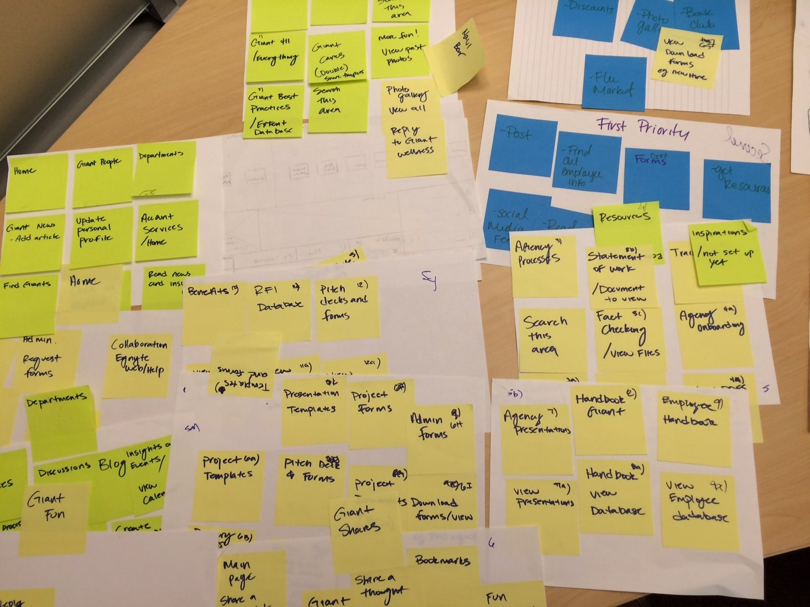 Affinity mapping helped translate scattered feedback into a structured understanding of employee needs. We clustered dozens of sticky notes from interview sessions into recurring themes