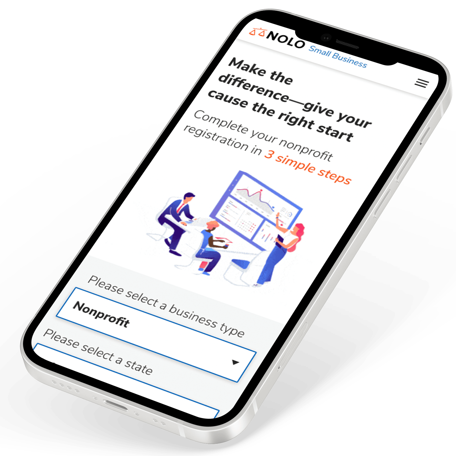Qualifications - For each entity page is displayed a unique menu of questions that they might ask themselves before starting their business our Nolo brand.