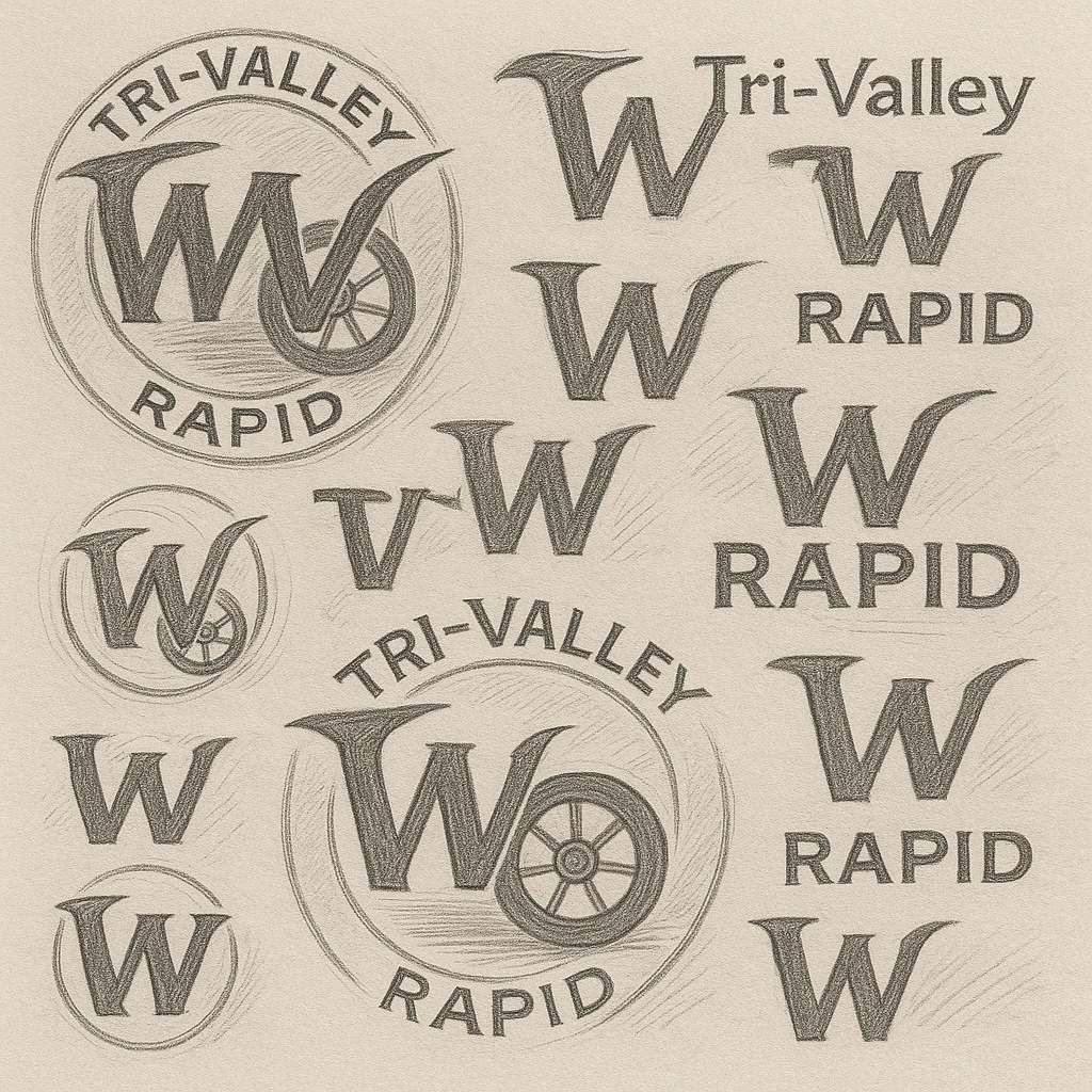 To bring visual cohesion to the Wheels brand while aligning it with the Tri-Valley Rapid identity, I began by sketching different variations of a new “W” mark.